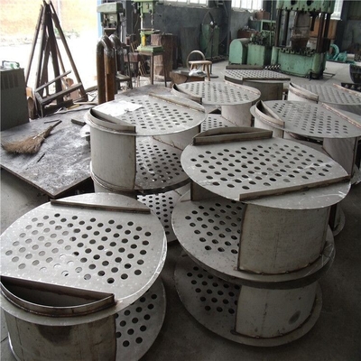 Die Struktur des Blasenkappenbehälters wird hauptsächlich aus einer Blase (Gas-Flüssigkeitskontaktelement), einem Gasaufbruch, einem Sammelwehr, einem Downcomer und einem Behälter verfasst. Der Blasenbehälter wird mit einer Mehrzahl von runden Löchern auf der Behälterplatte versehen, und jedes Loch wird mit einem kurzen Rohr geschweißt, das ein Aufbruchrohr genannt wird, und das Rohr wird mit einem „Hut“ nannte eine Blase bedeckt, und eine Mehrzahl von Streifen werden um die Blase gebildet. Loch, während der Operation, die flüssigen Flüsse vom oberen Behälter durch den Downcomer in den unteren Behälter, dann fließt seitlich durch die Behälterplatte und -flüsse in den folgenden Behälter; das Gas steigt vom unteren Behälter in das Aufbruchrohr und von den Durchläufen durch den ringförmigen Durchgang. Die Streifenlöcher des Blasenflusses in die flüssige Schicht zwischen die Blase.